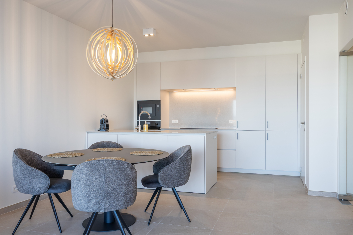 The spacious bathroom features a double sink and a walk-in shower. The apartment is located on Troonstraat, just a stone's throw from the beach. The tram stop, which easily takes you along the Belgian coastline, to the city center, or the station, is nearby, while the city center is within walking distance.