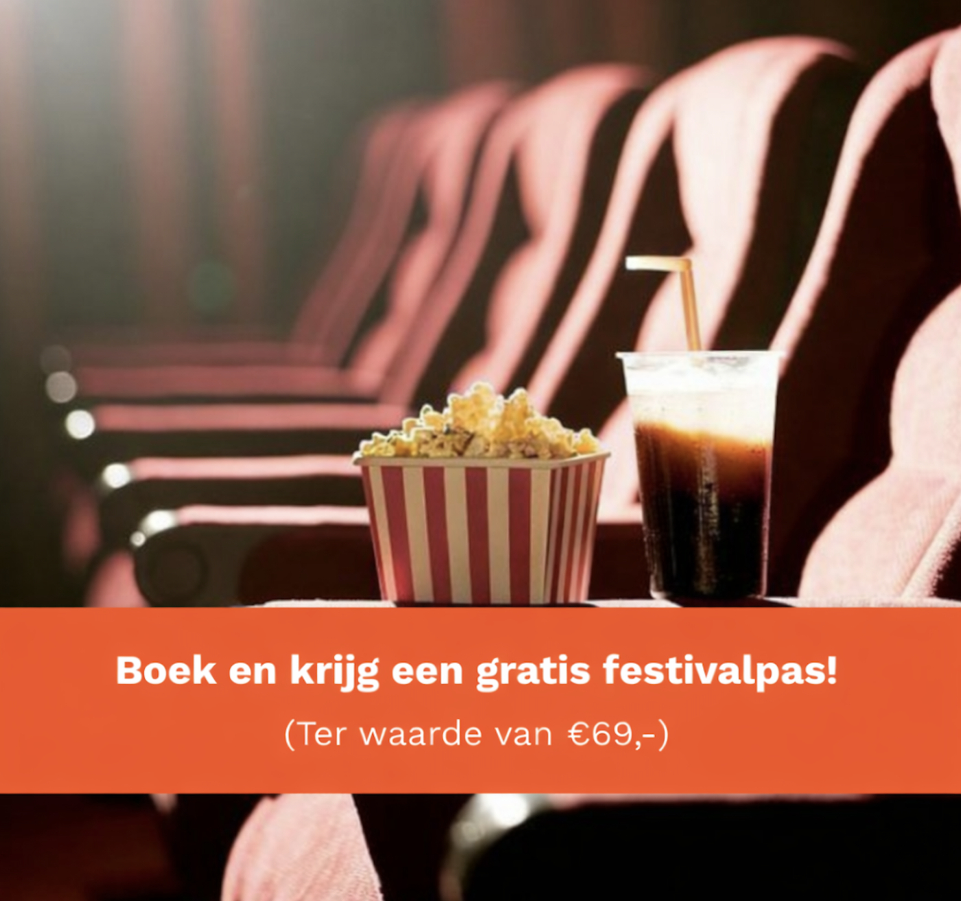 Bij een verblijf van minimaal 3 nachten ontvang je een gratis festivalpas ter waarde van €69! Zo kan je alle hoogtepunten van het festival ontdekken, over de rode loper wandelen en misschien je favoriete BV’s spotten!