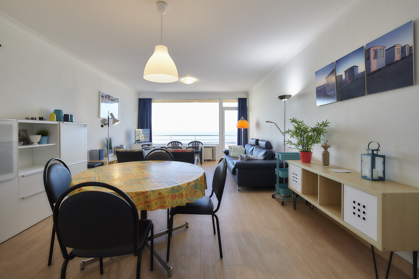 Appartement spacieux situé au 4ème étage sur la digue de Mariakerke, comprenant un salon avec une belle terrasse, télévison digitale, une cuisine équipée avec lave-vaisselle, une salle de bain avec baignoire/douche et lavabo, des toilettes séparées,débarras et à l'arrière deux chambres à coucher spacieuses, l'une avec un lit double et deux lits simples et l'autre avec un lit double. Les deux chambres s'ouvrent sur une terrasse. Stockage des vélos dans le bâtiment. Les animaux et fumer sont interdits.